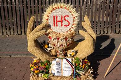 Wieniec pogrzebowy na dożynkach w Spale dla Krajewskiego. GR Ojdana komentuje