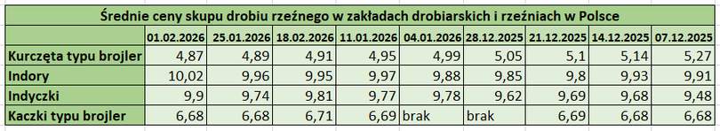 Odmienną sytuację notujemy w segmencie indorów - tutaj ceny systematycznie rosną, przekraczając na początku lutego barierę 10 zł/kg. Na początku grudnia było to bowiem 9,91 zł/kg.