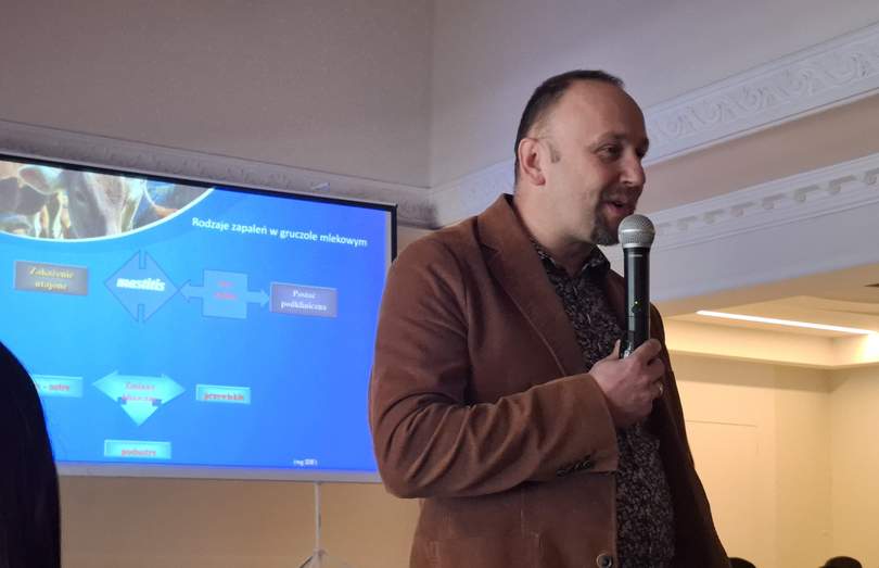 Dr Sebastian Smulski - lekarz weterynarii, jedyny Polak w European Mastitis Panel i wykładowca Uniwersytetu Przyrodniczego w Poznaniu - jako praktyk, który każdego tygodnia staje przed realnym problemem w realnych oborach, prowadząc wraz z zespołem ponad 20 tys. krów w kilkudziesięciu gospodarstwach, w niezwykle praktyczny sposób mówił o problemie, z którym mierzą się wszyscy hodowcy.