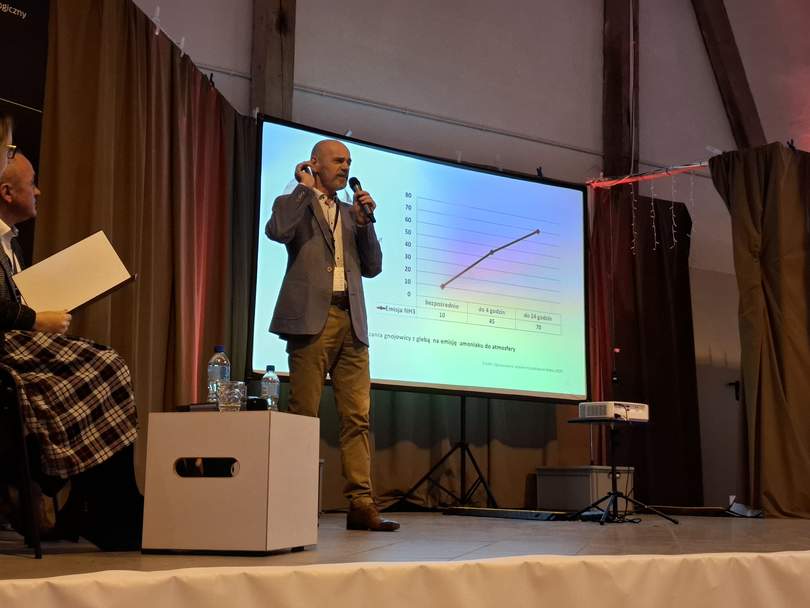 Podawał przy tym konkretne przykłady strat - w kontekście pozostawienia obornika na polu bez przykrycia. Z pryzmy ulatniają się nie tylko substancje odorowe, ale przede wszystkim amoniak i woda.