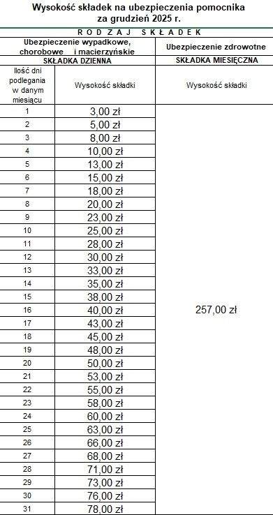 Tak z kolei prezentuje się kwestia opłat dziennych (za ubezpieczenie wypadkowe, chorobowa i macierzyńskie) - w przypadku kolejnego miesiąca, grudnia 2025: