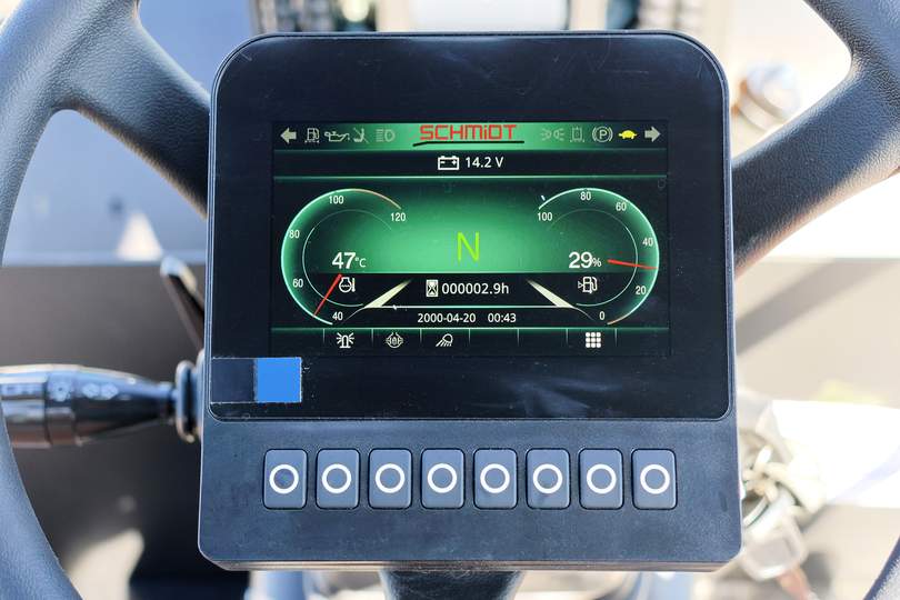 Warto również podkreślić, że wyświetlacz od Schmidt jest nowoczesny, intuicyjny i łatwy w obsłudze. Prezentuje wszystkie niezbędne informacje – od absolutnie kluczowych parametrów, mających bezpośredni wpływ na bezawaryjne i bezpieczne działanie maszyny, po dane wspierające komfort pracy operatora.