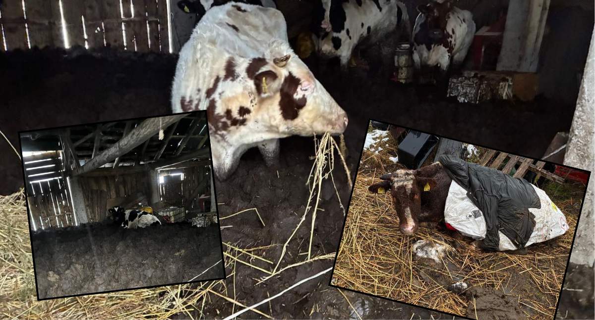 To nie wszystko. Na środku posesji leżała krowa okryta folią oraz kurtką, która nie była w stanie wstać o własnych siłach. Lekarz weterynarii podjął decyzję o uboju dwóch sztuk z uwagi na ich schorzenia.