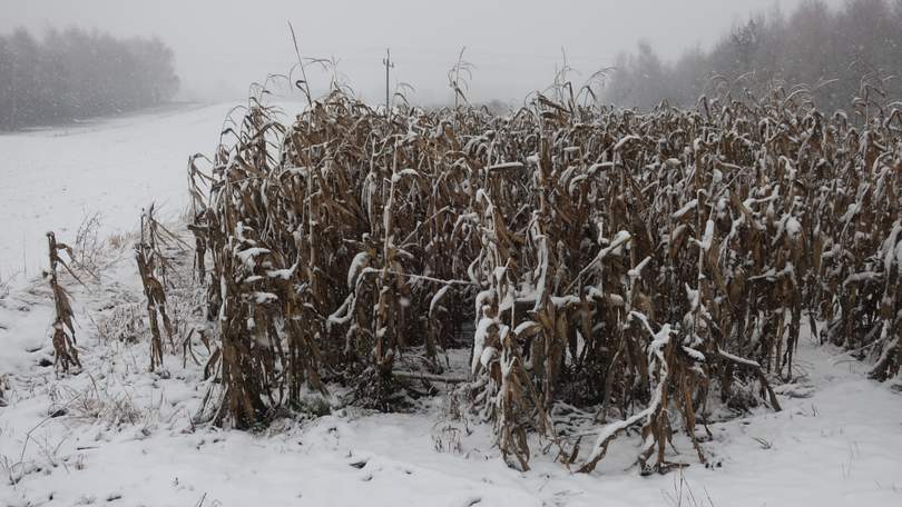 Opady śniegu w drugiej połowie listopada nie są czymś nadzwyczajnym, jednak w tym roku jesienna aura zupełnie nie sprzyja rolnikom. Częste opady deszczu, niskie temperatury spowodowały, że na polach pozostało do zebrania dużo kukurydzy.