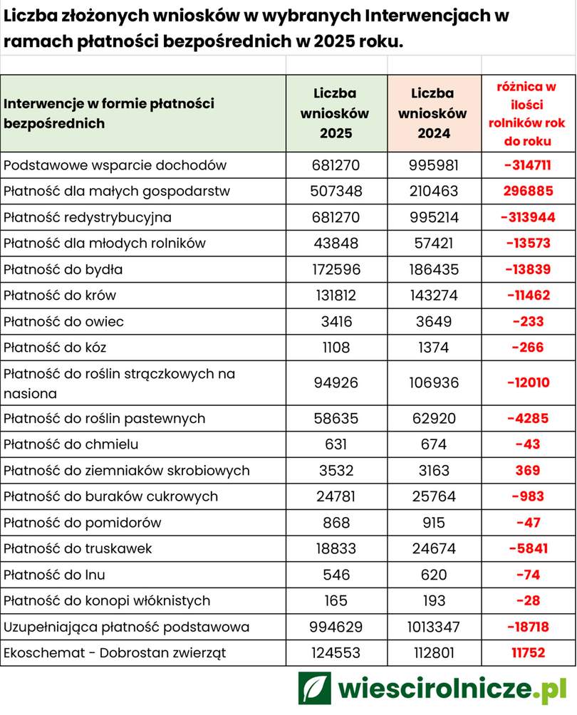 Co ciekawe, w tym roku o ryczałtową płatność dla małych gospodarstw zawnioskowało ponad 300 tys. więcej osób, niż w roku 2024.