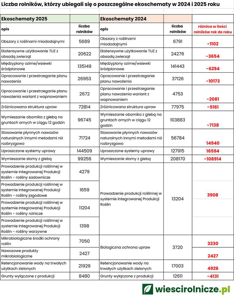 W przypadku niektórych ekoschematów zauważalne są także wzrosty zainteresowań.