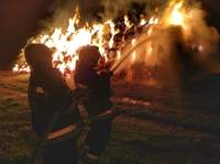 Strażacy starali się nie dopuścić do rozprzestrzenienia się ognia na sąsiadujące baloty.