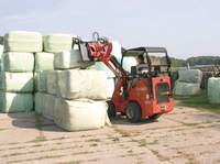 Miniładowarki Macks - maszyny te przez zastosowanie różnego rodzaju osprzętu doskonale radzą sobie w pracach przy żniwach m.in. przy układaniu beli, załadunku zboża oraz rozładunku nawozów.