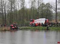 W stawie zauważono ciągnik rolniczy wywrócony do góry kołami. Natychmiast powiadomiona została straż pożarna i policja.
