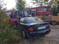 Kierowca Audi z impetem wjechał w ciągnik rolniczy. Traktorzysta nie był w stanie wydostać się z maszyny