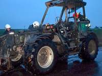 Policja wyjaśnia przyczyny pożaru do jakiego doszło na prostej drodze. Zapalił się ciągnik rolniczy.