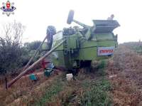 Żniwa 2018. Kombajn zbożowy nagle przewrócił się. To naprawdę cud, że jego operator uszedł z tego zdarzenia z życiem...
