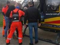 71-letni mężczyzna zranił się w nogę piłą motorową. Zabrało go Lotnicze Pogotowie Ratunkowe.