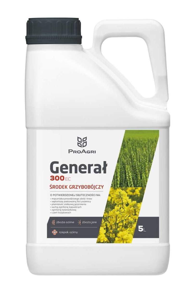 Kolejnym produktem w ofercie jest Generał 300 EC oparty na protiokonazolu - triazolu o wyjątkowej budowie chemicznej. Jako jedyny przedstawiciel tej grupy zawiera w cząsteczce dodatkową grupę tiokarbonylową (C=S), co przekłada się nie tylko na większą skuteczność działania, ale również korzystny profil środowiskowy w porównaniu do innych triazoli. Fungicydy ma również bardzo szeroki zakres stosowania obejmujący najważniejsze uprawy.