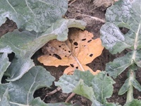 pękająca szyjka, deformacje, niedostateczne wypełnienie łuszczyn, fioletowe przebarwienia liści