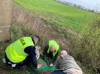Ranne zwierzę przesuwało się w kierunku torów. Gdyby nie interwencja policjantów i pracowników fundacji "Dzika Ostoja", zginęłoby pod kołami nadjeżdżającego pociągu.